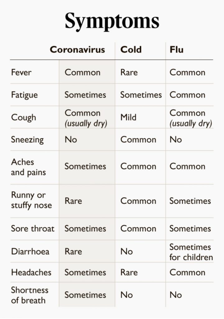 Coronavirus: Symptoms chart
